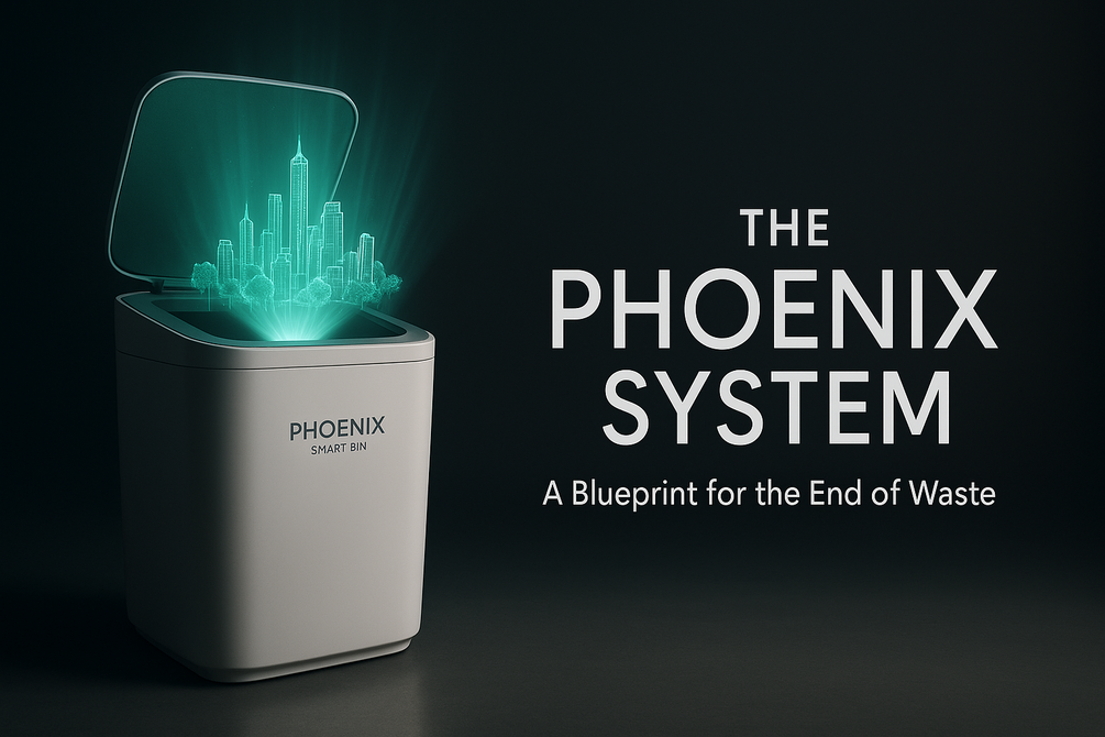 - The Complete "Phoenix Bin" Design: Detailed plans, technical specifications, and illustrations for the smart bin hardware, from the consumer model to the industrial-grade unit.